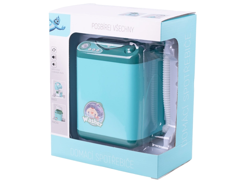 Ontdek de charme van huishoudelijke taken in de speelwereld. Deze kinderwasmachine bootst een echt apparaat natuurgetrouw na dankzij het realistische uiterlijk en de geluidseffecten, die kinderen een authentieke waservaring bieden. De compacte afmetingen van 14 × 10,5 cm zijn ideaal voor de kinderkamer en voor onderweg.