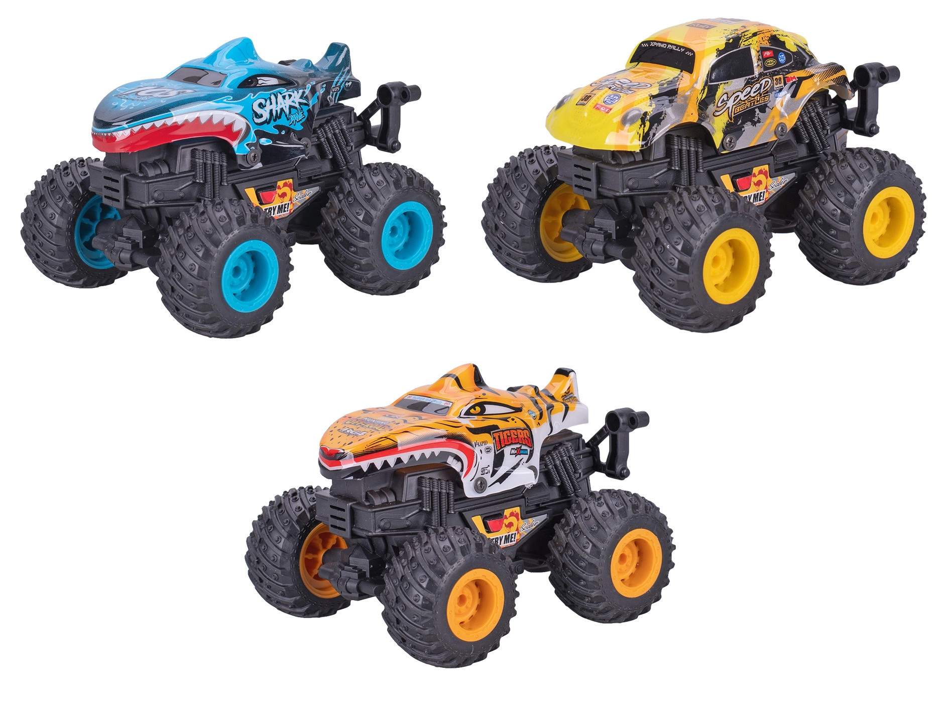 De leuke Roadblasters monstertruck van 12 cm met vliegwielaandrijving biedt een soepele rit en indrukwekkende licht- en geluidseffecten. Kinderen kunnen kiezen uit zes originele varianten – haai, tijger, kever, dinosaurus, pick-up en SUV. In de verpakking zitten 3× LR44-batterijen, dus het speelplezier kan meteen beginnen. Een ideale speelgoedauto voor kleine autoliefhebbers vanaf 3 jaar.