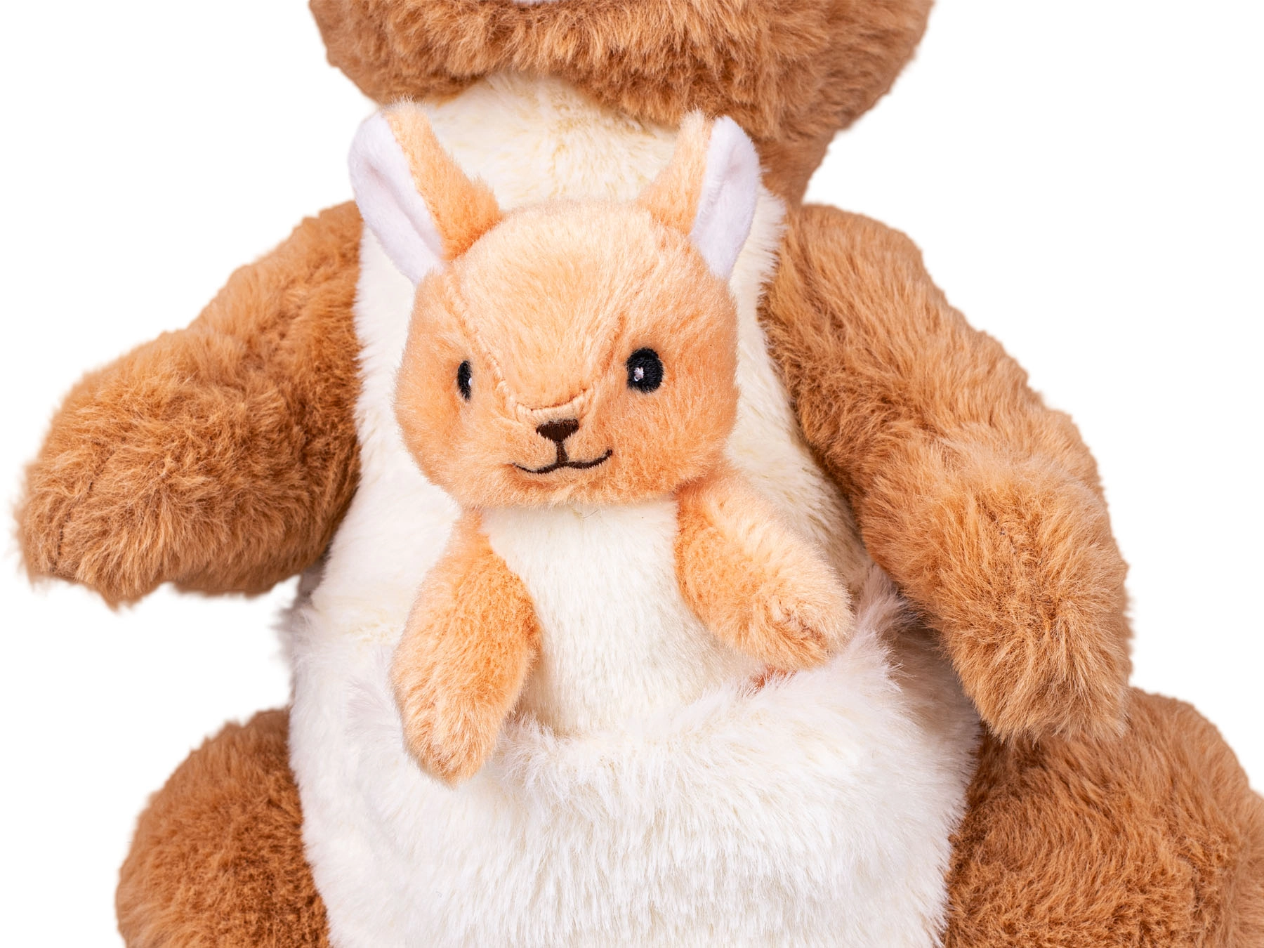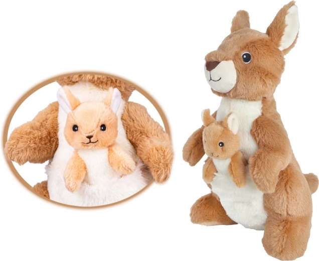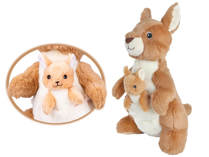 Deze schattige pluche kangoeroe met jong uit de collectie Take Me Home is een heerlijk zachte knuffelvriend voor kinderen vanaf de geboorte. Dankzij de zachte pluche, het realistische design en het compacte formaat van 32 cm geeft hij kinderen een gevoel van veiligheid, prikkelt de fantasie en is hij perfect om mee te knuffelen thuis en onderweg.