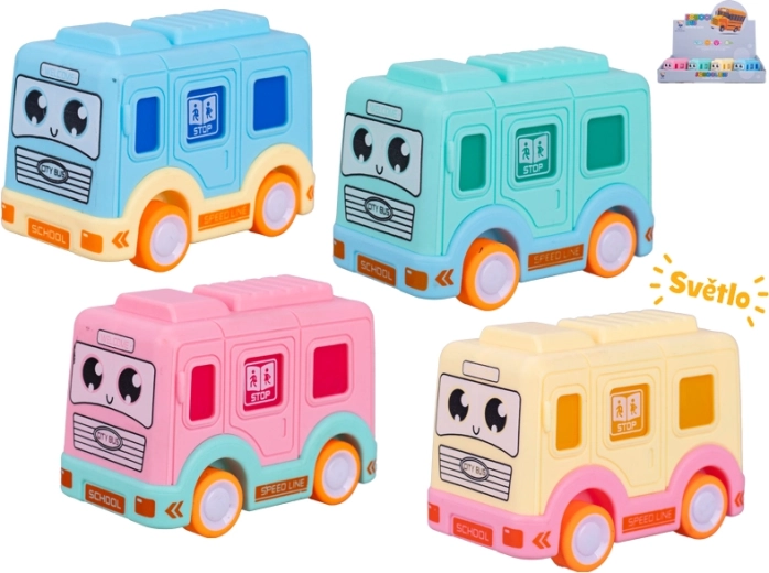 Compact speelgoed voor kleine chauffeurs: deze bus van 8,5 cm heeft vliegwielaandrijving voor een soepele voorwaartse beweging en lichteffecten voor nog meer plezier. Ideaal voor kinderen vanaf 3 jaar, ondersteunt de ontwikkeling van de fijne motoriek en de fantasie. Verkrijgbaar in 4 kleuren – blauw, roze, groen en geel.