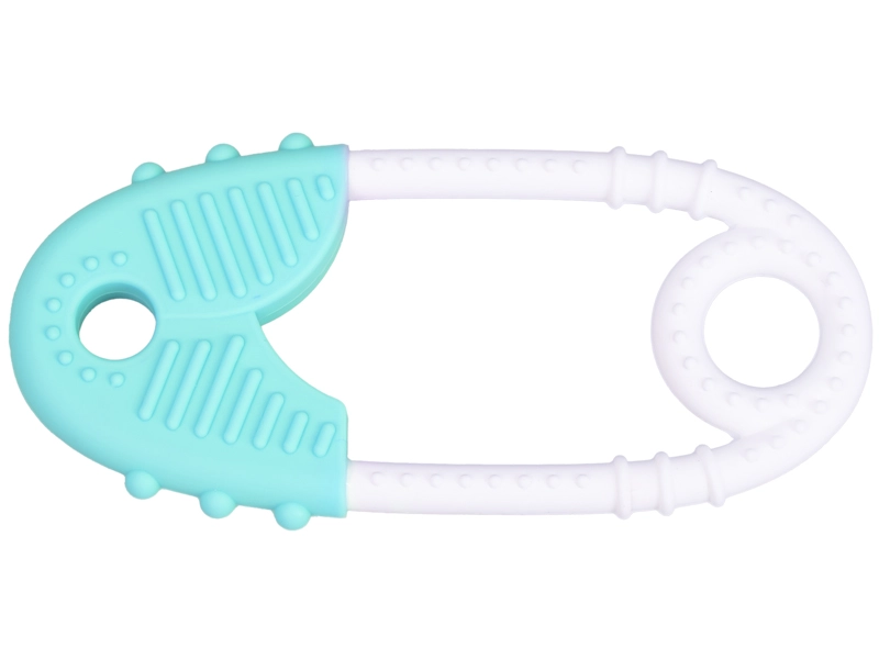 Zoek je een zachte oplossing voor de periode van doorkomende tandjes? Het siliconen bijtspeeltje in de vorm van een veiligheidsspeld is ontworpen voor het comfort van de baby en het gemak voor de ouders. Het is licht, ergonomisch en dankzij het getextureerde oppervlak biedt het een aangename massage van het tandvlees, wat helpt spanning en ongemak te verlichten.