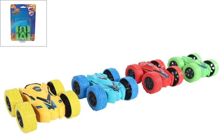 De mini stuntauto Roadblasters biedt snelle, actierijke fun zonder batterijen. Dankzij de vliegwielaandrijving beheerst hij moeiteloos 180° flip-overtrucs en door het slijtvaste kunststof gaat hij lang mee, zelfs bij intensief spelen. Het compacte formaat van 7,5 cm is ideaal voor thuis en onderweg, verkrijgbaar in 4 felle kleuren.