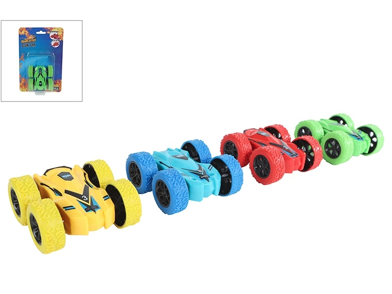 Beleef de adrenaline met dit miniatuur stuntvoertuig dat spectaculaire salto’s en 180° spins uitvoert. De vliegwielaandrijving zorgt voor eenvoudige bediening – trek de auto naar achteren en laat los. Dankzij de hoogwaardige afwerking van duurzaam kunststof kan hij ook zwaardere stunts aan, terwijl hij licht en draagbaar blijft.