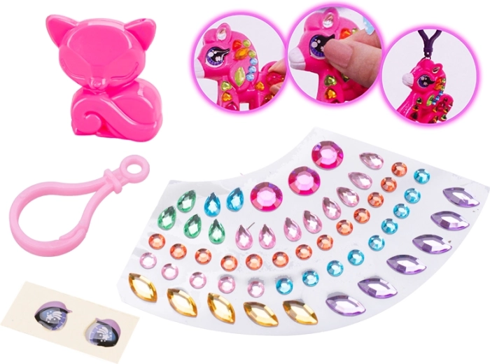 Deze glamoursset is ideaal voor kleine creatievelingen die houden van knutselen en het personaliseren van accessoires. In de verpakking vind je alles wat je nodig hebt – een plastic diertje (6 cm), een praktische karabijnhaak om te bevestigen en gekleurde zelfklevende steentjes, inclusief oogstickers. Versieren is eenvoudig en leuk; het resultaat is een originele sleutelhanger naar jouw smaak.