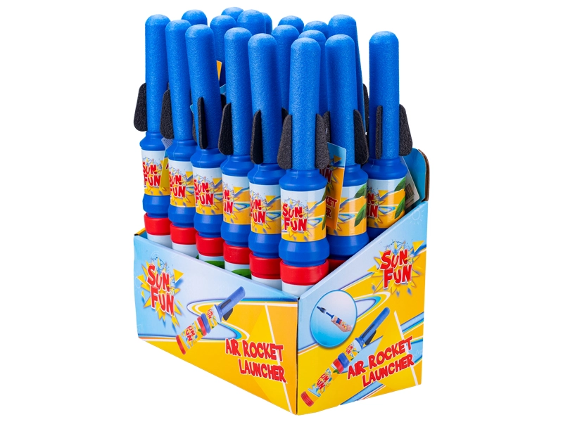 Ontdek eenvoudige en meeslepende buitenspanning met de Sun Fun luchtraket. Trap op het lanceermechanisme en de raket schiet de lucht in – kinderen krijgen veel beweging en begrijpen tegelijk hoe samengeperste lucht en de lanceerkracht werken. Dankzij het stevige kunststof is het speelgoed klaar voor veelvuldig gebruik.