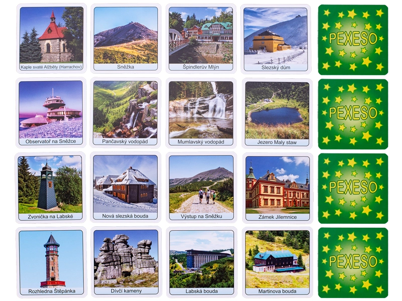 Ontdek de schoonheid van het Reuzengebergte en train je geheugen met pexeso voor het hele gezin. Het spel bevat 64 kaartjes met prachtige illustraties, is gemakkelijk mee te nemen in een praktische doos en is geschikt vanaf 3 jaar.
