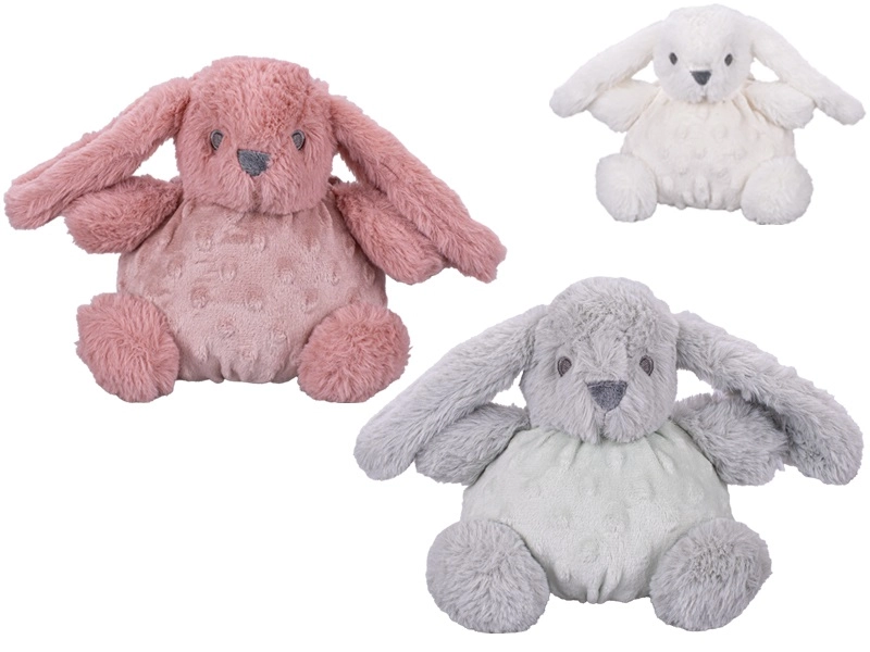 Dit charmante konijntje is ontworpen met oog voor veiligheid en comfort, zelfs voor de allerkleinsten. De combinatie van verschillende texturen en kleuren (grijsgroen, wit, roze) stimuleert op natuurlijke wijze zowel het zicht als de tast. De geïntegreerde rammelaar rinkelt zachtjes bij beweging, wekt nieuwsgierigheid en prikkelt de zintuigen.