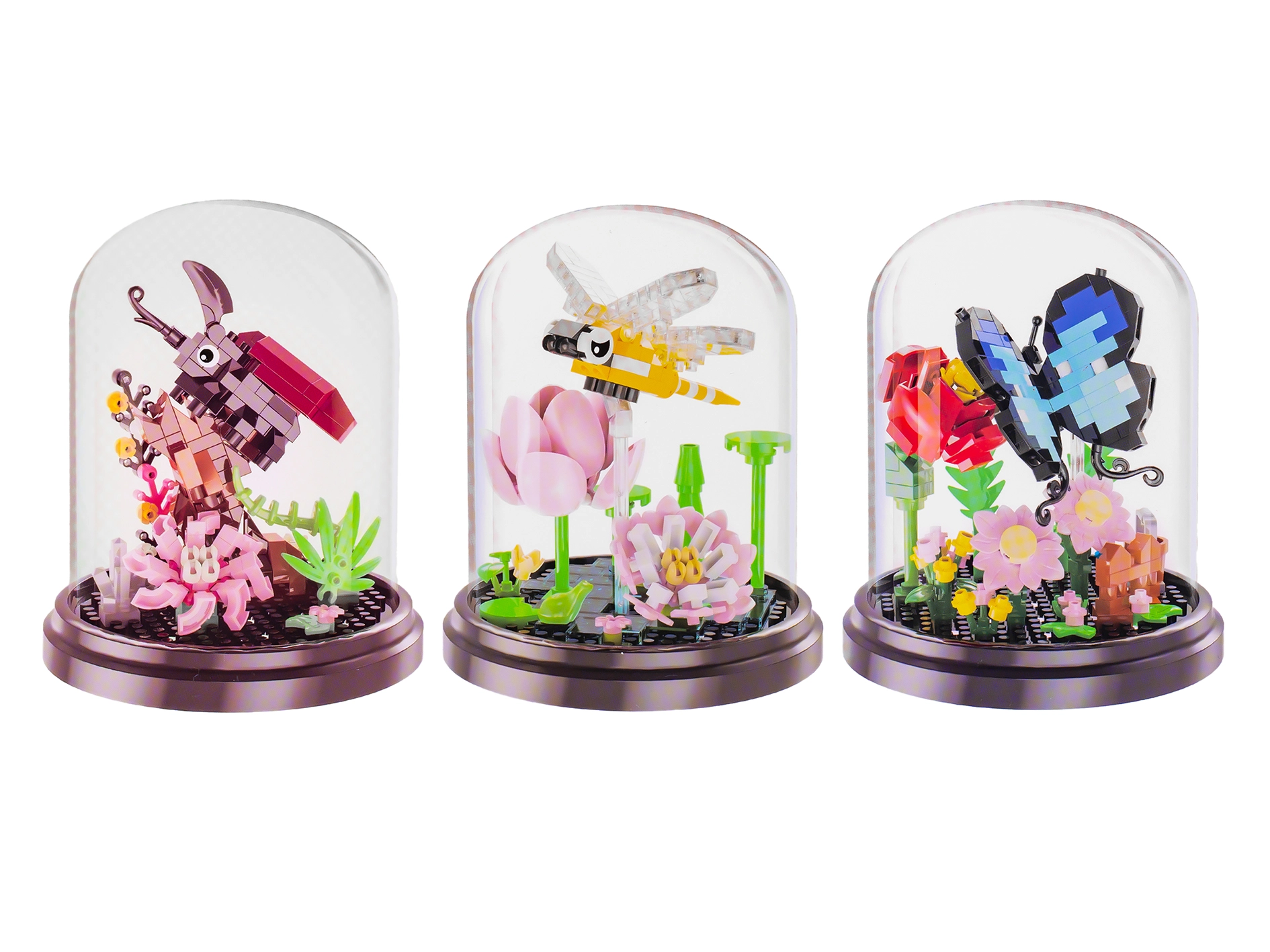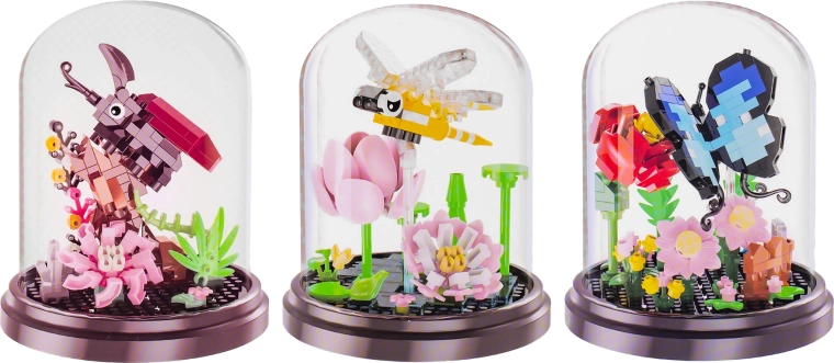 Creatieve bouwset voor kinderen vanaf 6 jaar om vier soorten insecten met een bloem te bouwen – een vlinder, bij, kever en libel. De set met 253–281 onderdelen ontwikkelt de fijne motoriek, logisch denken en geduld. Inclusief een transparante stofkap voor het eenvoudig tentoonstellen van het voltooide model met afmetingen van ca. 11 × 8,6 cm.