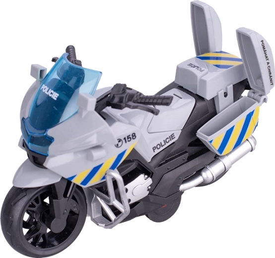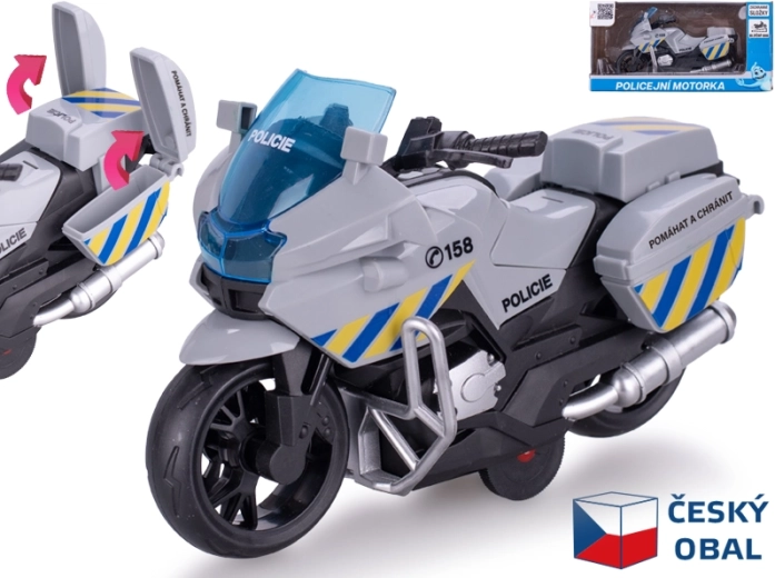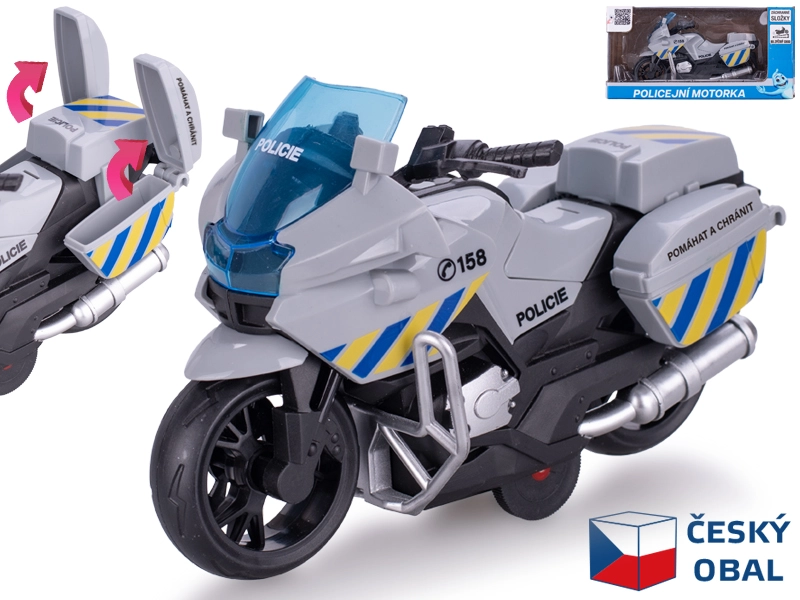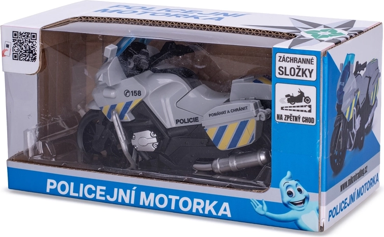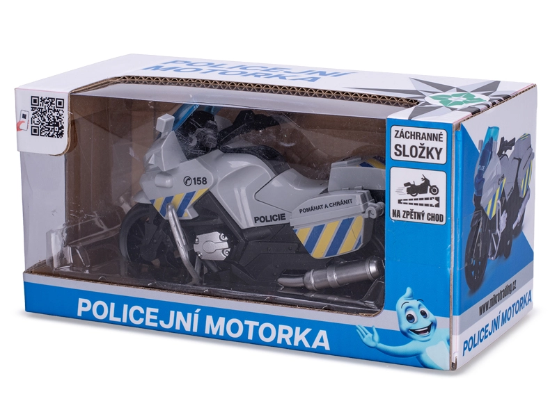 Realistische politiemotor van 16 cm is een geweldig speelgoed voor kleine actiefans. Dankzij het terugtrekmechanisme (pull-back) hoef je hem alleen naar achteren te trekken en rijdt de motor zelf weg. Authentieke Tsjechische opschriften POLICIE en duurzaam plastic garanderen veel speelplezier en een lange levensduur. Ideaal voor de ontwikkeling van motorische vaardigheden bij kinderen vanaf 3 jaar.