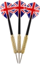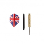 De set werpdarts bevat drie darts met robuuste metalen punten en opvallende Union Jack flights die stijl toevoegen aan je spel. De darts zijn ontworpen voor zowel beginnende als gevorderde spelers. Verwisselbare shafts en flights maken eenvoudige personalisatie mogelijk.