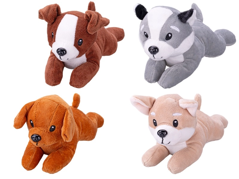 Het hondje is verkrijgbaar in vier kleuren – grijs, beige, roestbruin en bruin. Elke variant heeft een unieke look die de kinderlijke verbeelding prikkelt en de emotionele band versterkt. Dankzij het compacte formaat is het ideaal voor thuis en onderweg.