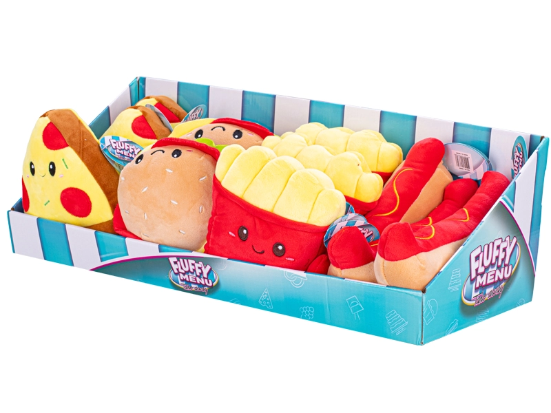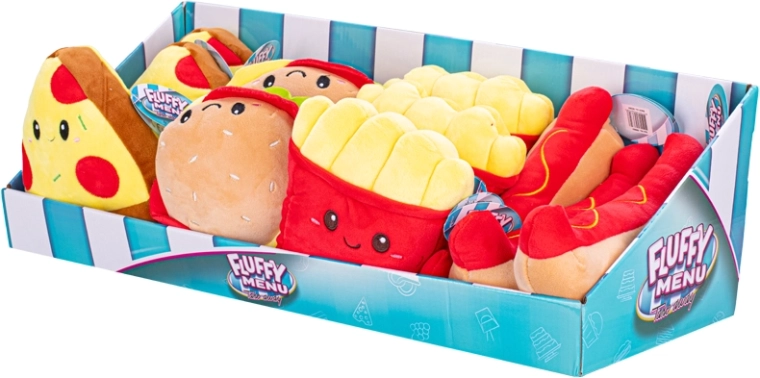 De Fluffy Menu-collectie brengt favoriete fastfoodlekkernijen in een zachte pluche uitvoering. Kinderen zullen de realistische vormen en kleuren geweldig vinden, die de verbeelding, zintuiglijke beleving en eerste rollenspellen stimuleren. Dankzij de veilige afwerking zijn de speeltjes ook geschikt voor de allerkleinsten.