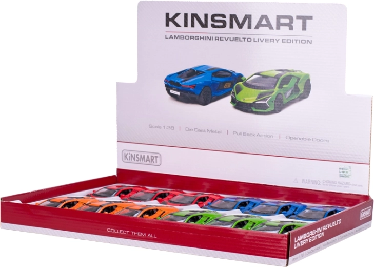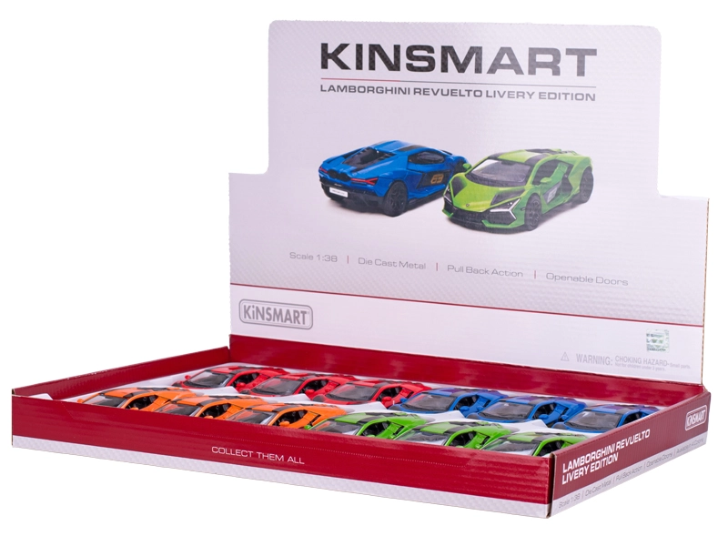 Stijlvol verzamelmodel van de Lamborghini Revuelto op schaal 1:38 met een lengte van 13 cm dat zowel kinderen als volwassenen zal bekoren. De combinatie van metalen en kunststof onderdelen zorgt voor duurzaamheid en een gedetailleerde uitstraling, terwijl de terugtrekmotor voor speelse interactie zorgt. Verkrijgbaar in 4 kleurvarianten – oranje, blauw, groen en rood. Geschikt voor kinderen vanaf 3 jaar.