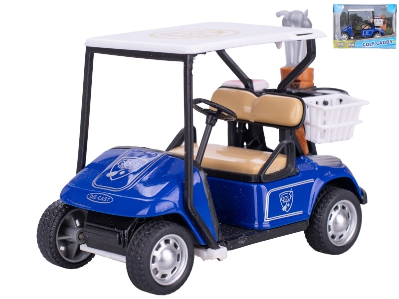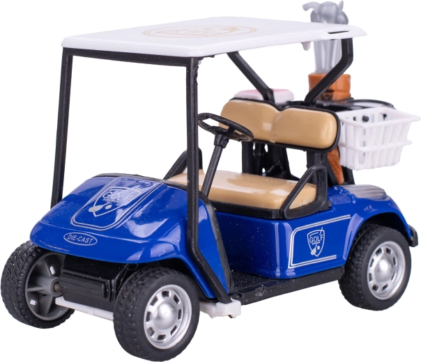 Gedetailleerd model van een golfkar van 10 cm, gemaakt van metaal en kunststof voor duurzaamheid en een realistische uitstraling. Dankzij de pull-back functie rijdt hij na het aantrekken vanzelf weg, wat kinderen extra speelplezier geeft. Inclusief een set golfclubs en een praktische doos voor eenvoudig opbergen. Ideaal voor kinderen vanaf 3 jaar, jonge sportliefhebbers en modelverzamelaars.