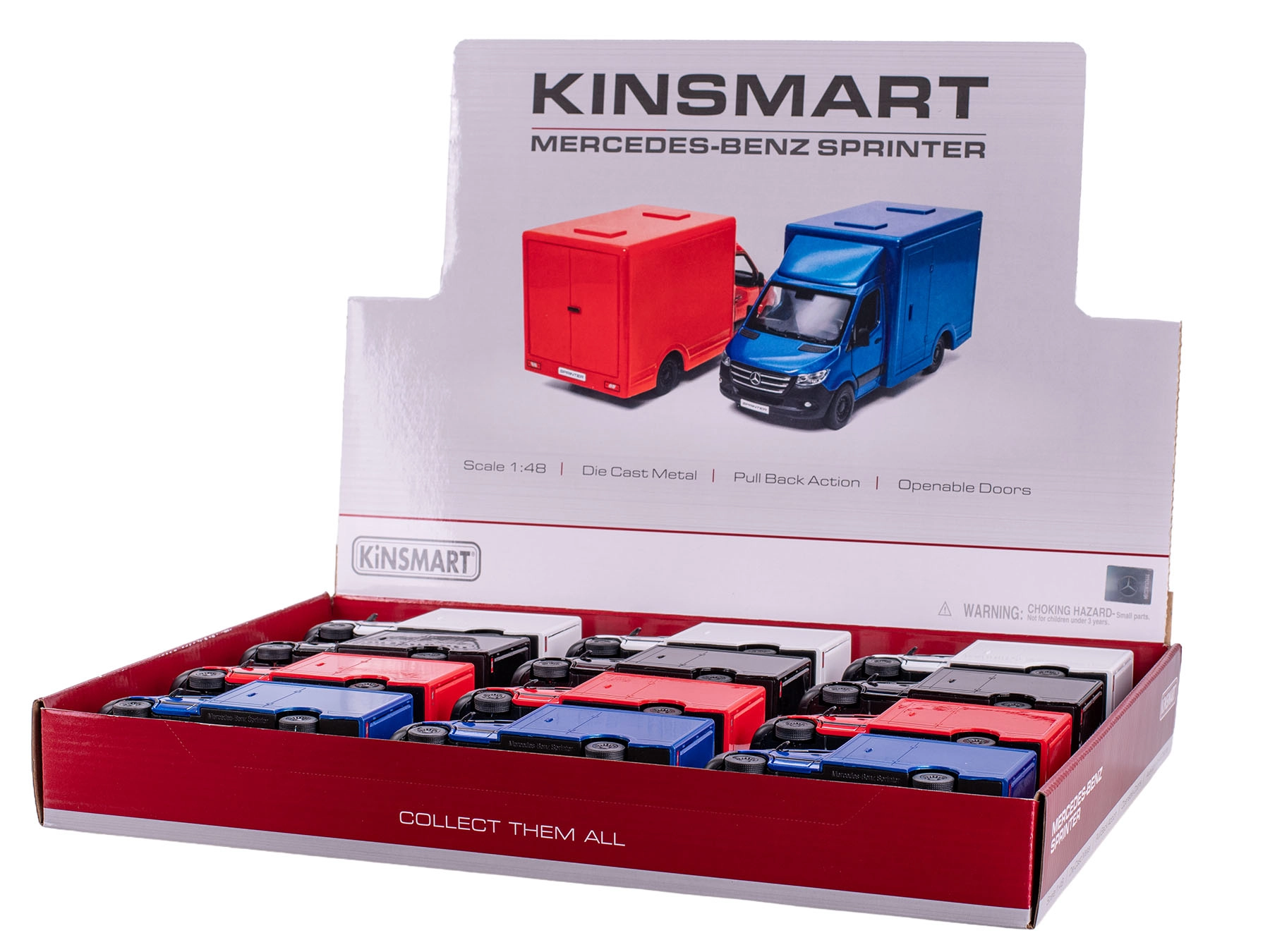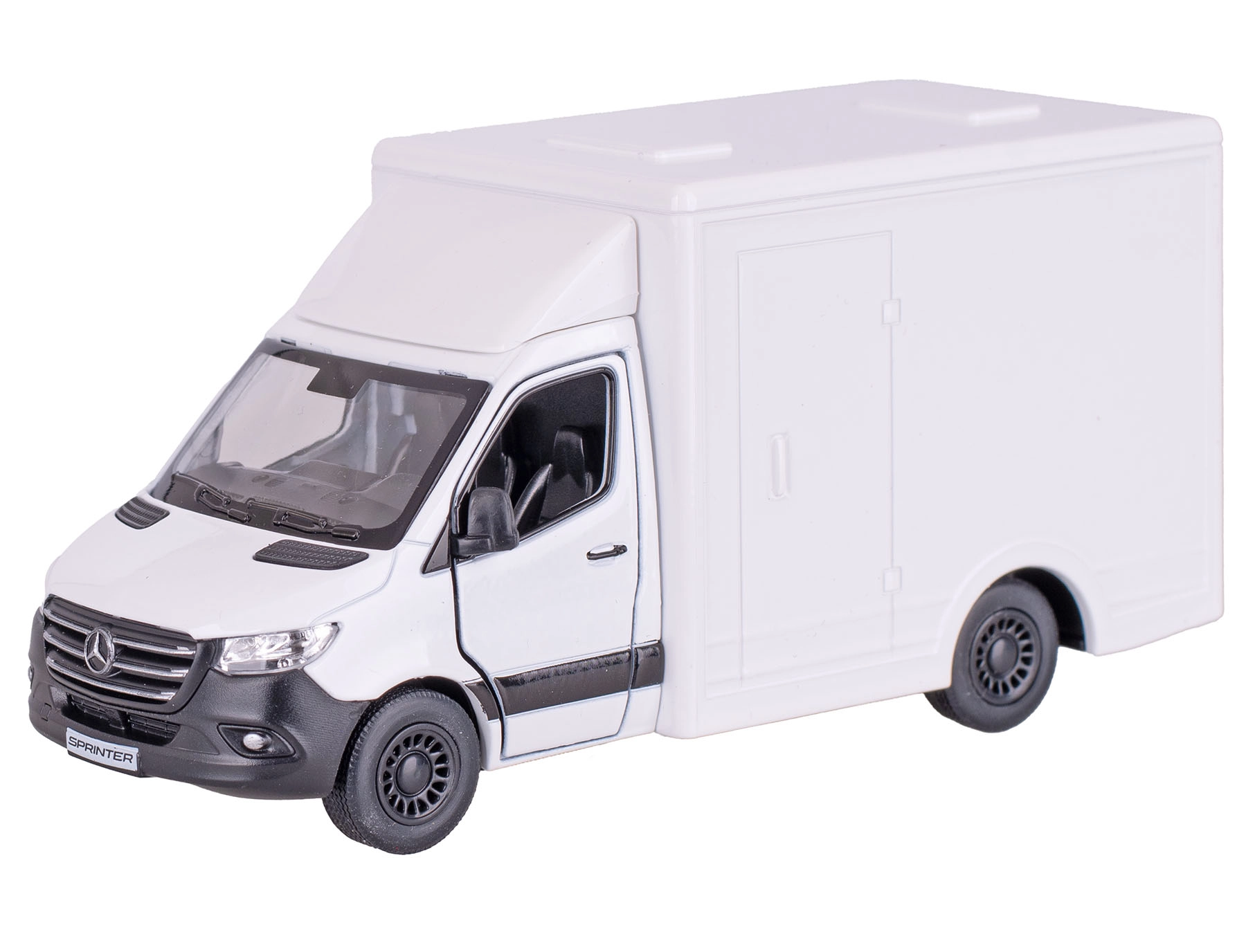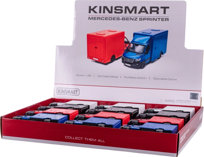 Het metalen model van de MERCEDES-BENZ Sprinter op schaal 1:48 overtuigt met realistische details en hoogwaardige afwerking. Dankzij de openende deuren en het pull-back mechanisme geniet je van interactieve speelervaring of kun je het stijlvol tentoonstellen in je collectie. De duurzame combinatie van metalen en kunststof onderdelen zorgt voor een lange levensduur en tegelijk een laag gewicht.