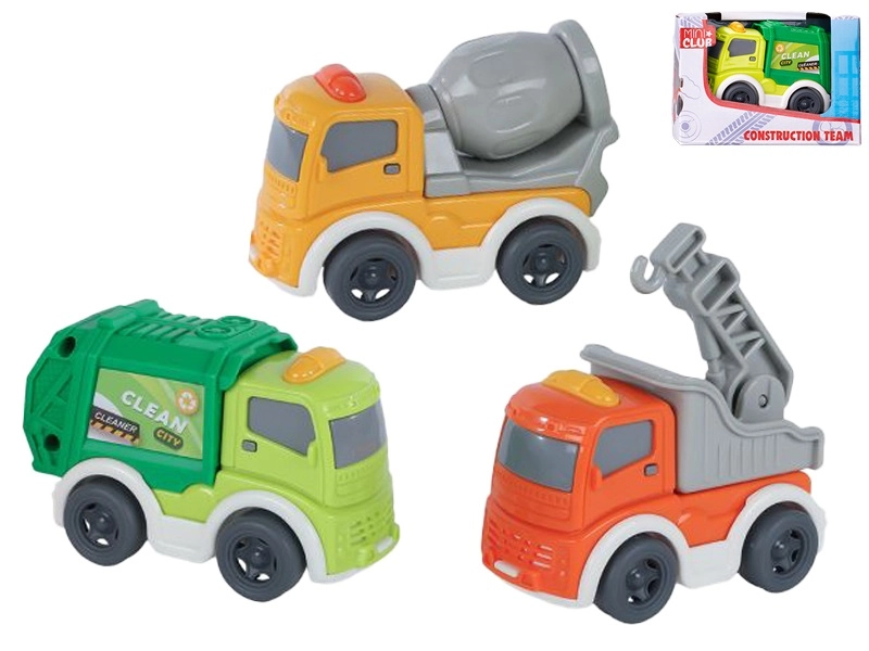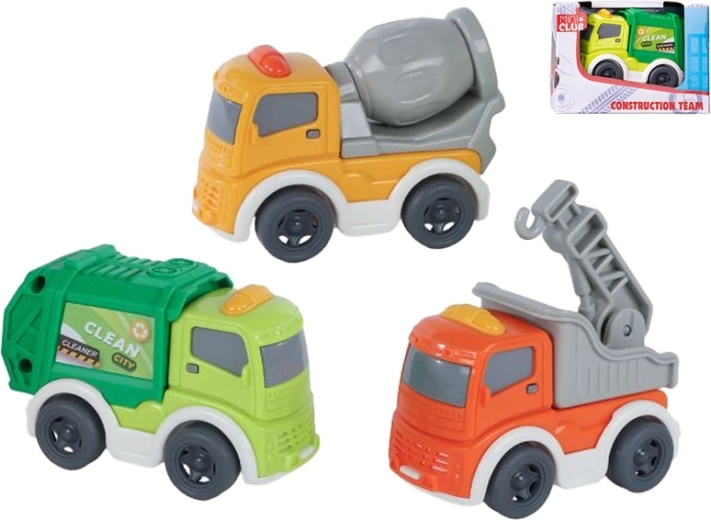 Het speelgoed is verkrijgbaar in drie populaire varianten: betonmolen, kraan en vuilniswagen. Dankzij het compacte formaat passen de voertuigen in een broekzak of rugzak en zijn ze ideaal voor onderweg of in de kinderkamer. Geleverd in een doosje – een geweldig cadeautip voor kleine liefhebbers van bouwmachines.