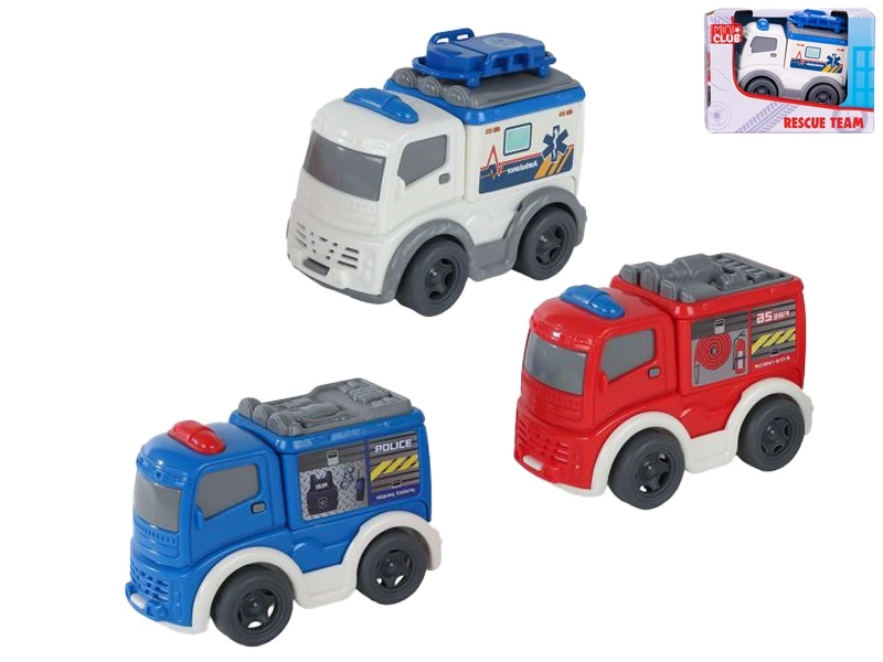 Er zijn drie populaire varianten beschikbaar – politieauto, brandweerwagen en ambulance – die uitnodigen tot spannend reddingsspel en de verbeelding stimuleren. Elk voertuig is individueel in een doosje verpakt, waardoor het een leuk klein cadeautje is.
