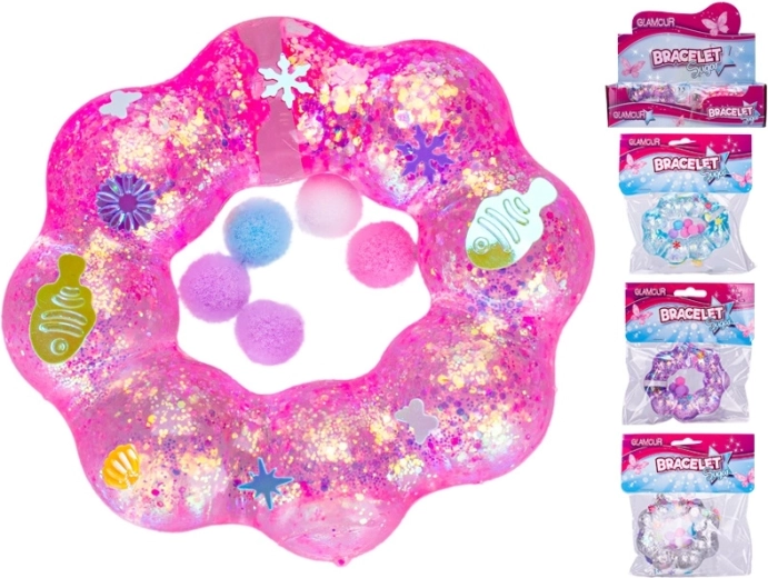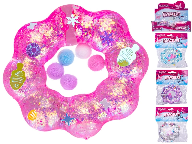 Stijlvolle stretcharmband met een diameter van 8,5 cm die opvalt door zijn glanzende design met pailletten en glitter. Dankzij het elastische materiaal past hij zich eenvoudig aan verschillende polsmaten aan en biedt hij comfortabel draaggemak voor kinderen en volwassenen. Verkrijgbaar in vier aantrekkelijke kleuren – paars, roze, turkoois en grijs. Bovendien werkt hij als een anti-stress hulpmiddel om overdag te knijpen en uit te rekken.