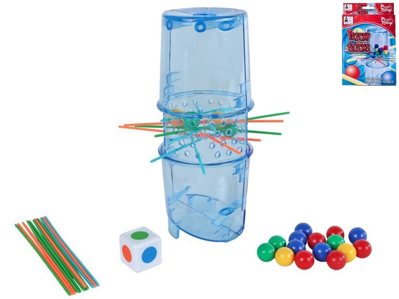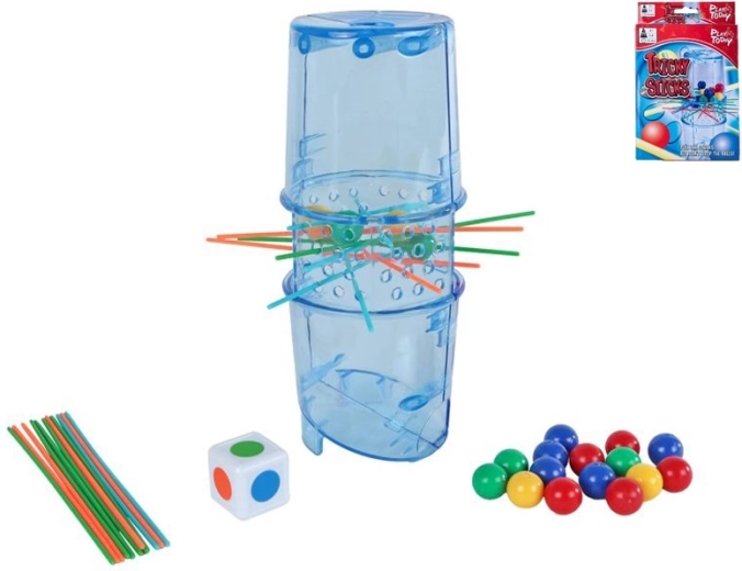 Ontdek het plezier met Play Today Tricky Stick Mikado – een moderne versie van het geliefde mikado met een transparante toren, gekleurde stokjes en knikkers. Spelers trekken om de beurt stokjes zodat er zo min mogelijk knikkers vallen. Degene bij wie aan het einde van het spel de minste knikkers zijn gevallen, wint.