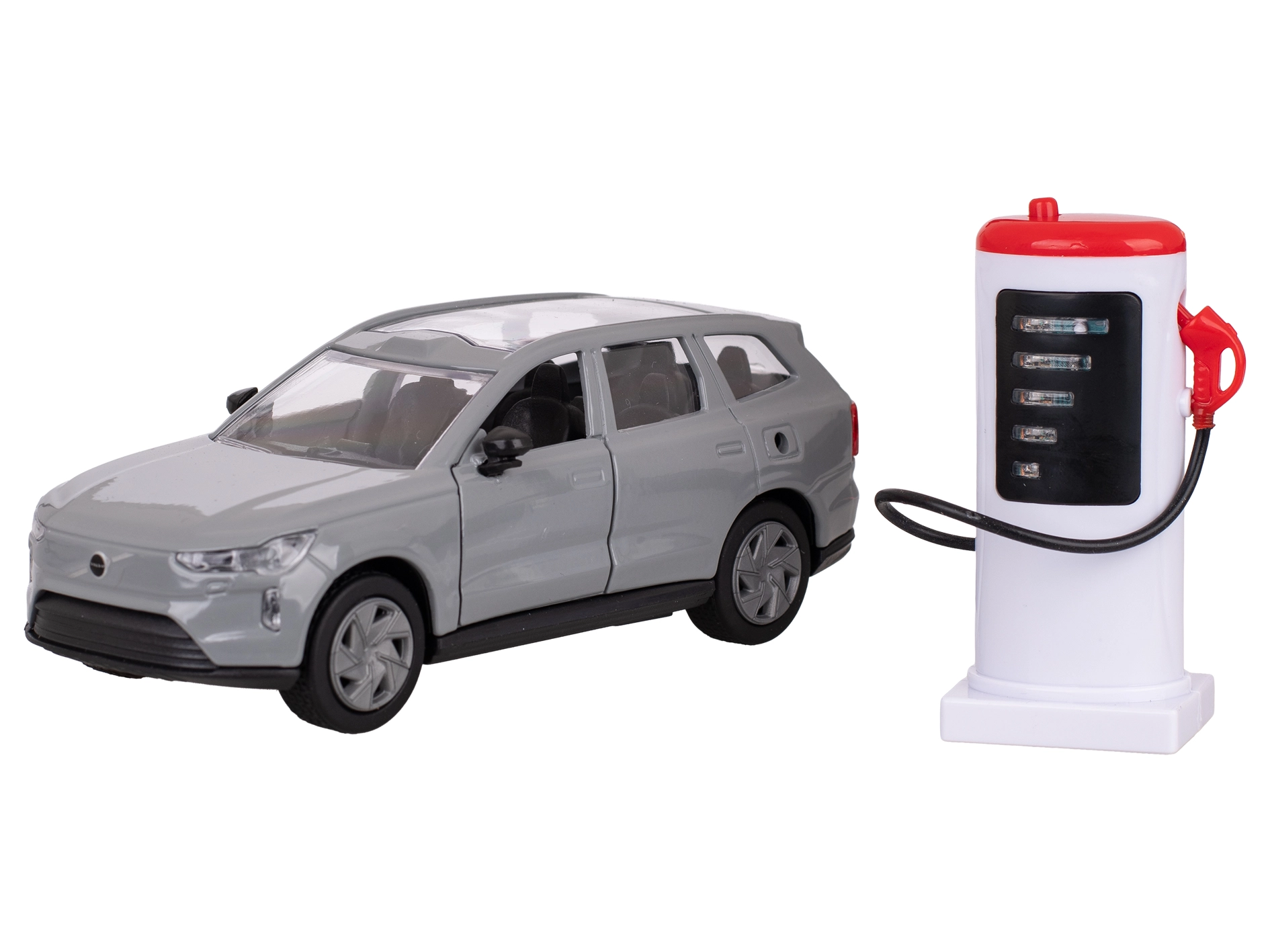 In de verpakking zit een stijlvol laadstation, dat extra authenticiteit toevoegt aan speelscènes. Het model is gemaakt van metaal en hoogwaardig kunststof, waardoor het zowel duurzaam als gedetailleerd is. Dankzij het compacte formaat van 13,5 cm past het gemakkelijk in de hand en in de zak voor onderweg.