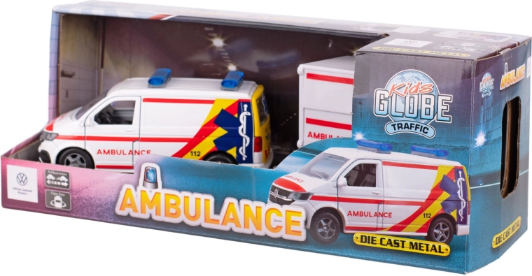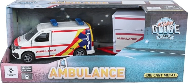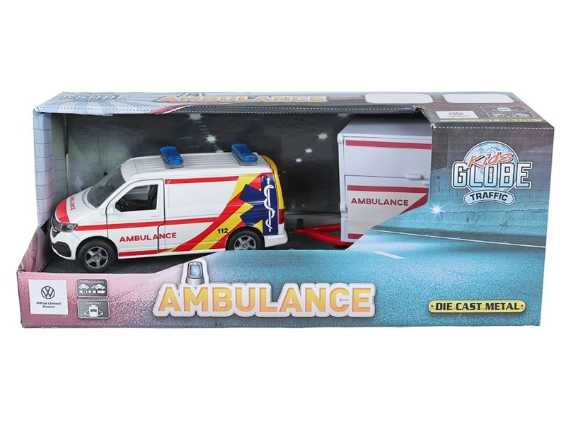 Ontdek het gedetailleerde model Kids Globe Traffic ambulance VW Transporter met aanhanger, dat een realistische uitstraling combineert met geweldige functies voor creatief spel. Dankzij de combinatie van metaal en kunststof is het voertuig stevig, licht en gemakkelijk te hanteren. De pull-back aandrijving en de openslaande deuren zorgen voor extra authenticiteit, waardoor kinderen veel speelplezier beleven, zowel binnen als buiten.
