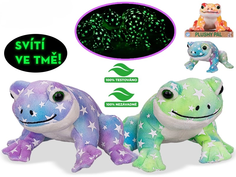 Schattige pluchen kikkertje van 12 cm dat in het donker licht en kinderen helpt zich ’s nachts veilig te voelen. Gemaakt van zacht pluche van hoge kwaliteit, geschikt vanaf de geboorte. Verkrijgbaar in 4 heldere kleuren – groen, oranje, paars en blauw.