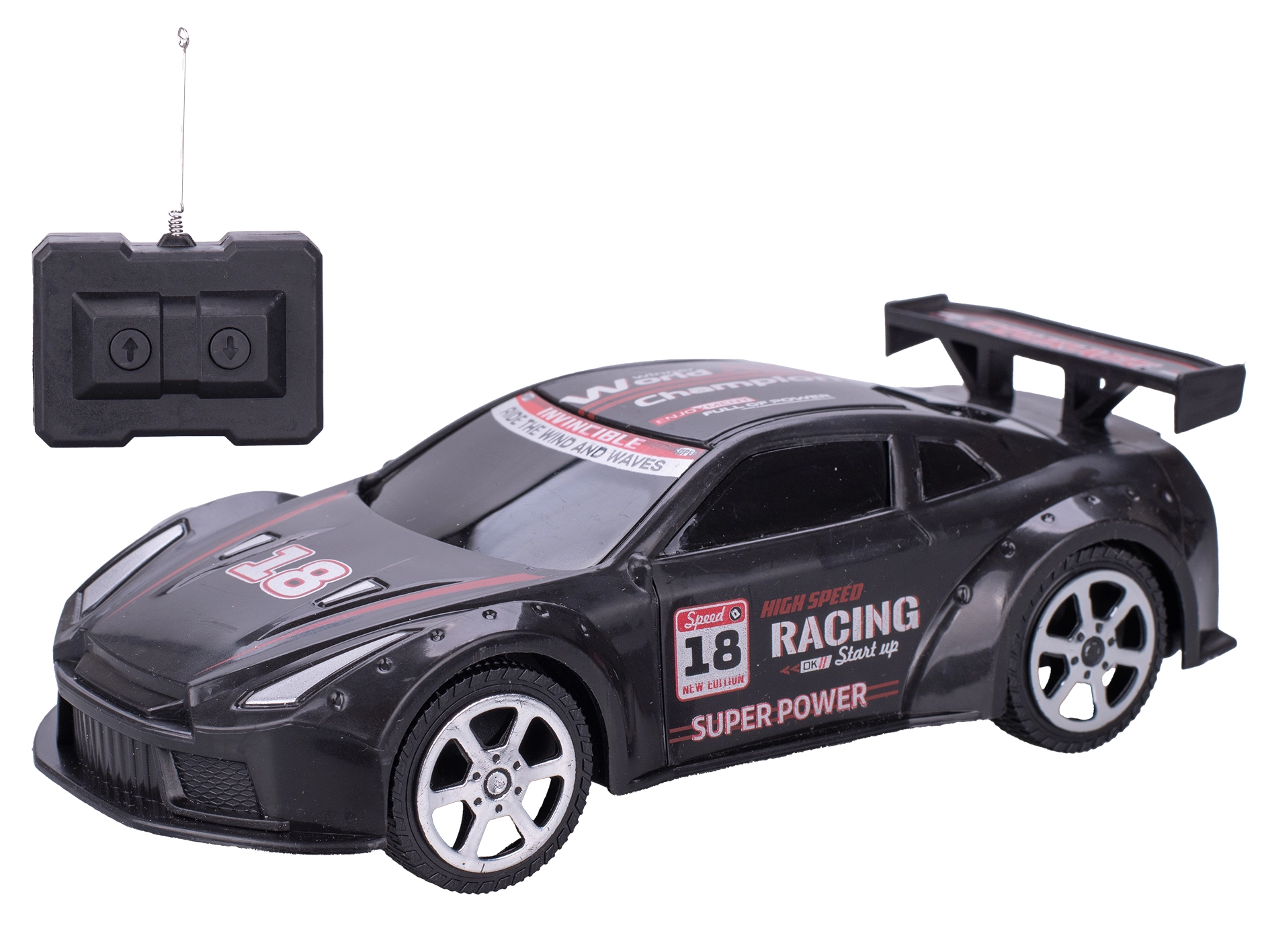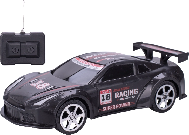 Compacte R/C raceauto van 18 cm lang is de perfecte keuze voor jonge liefhebbers van snelheid. Dankzij de eenvoudige bediening op 27 MHz is hij ideaal voor kinderen vanaf 6 jaar. Werkt op batterijen voor eenvoudig onderhoud en snelle start. Keuze uit twee aantrekkelijke spoilervarianten – recht of golvend, verpakt in een cadeaudoos.