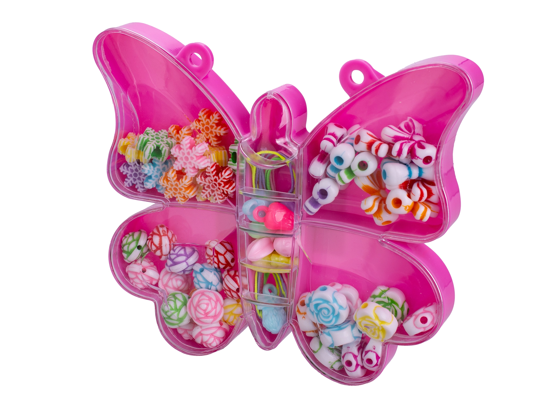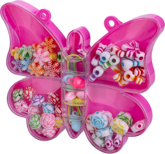 Ontdek een leuke set rijgkralen waarmee kinderen vanaf 3 jaar hun eigen sieraden en decoraties kunnen maken. De set bevat 20 gekleurde kralen in de vormen vlinders en schelpen, opgeborgen in een praktische box voor eenvoudig meenemen. Het knutselen stimuleert fijne motoriek, geduld en creativiteit.