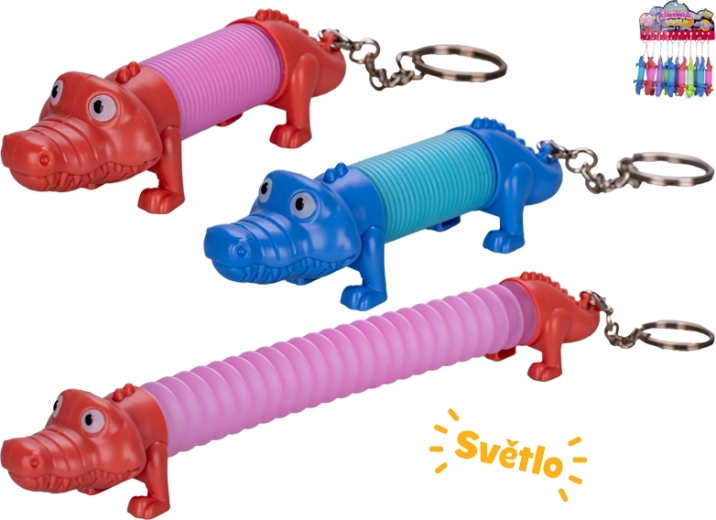 Ontdek deze speelse sleutelhanger in de vorm van een krokodil die, zodra je hem opwindt, gaat rijden en tijdens het bewegen oplicht. Hij is licht, duurzaam en dankzij het compacte formaat gemakkelijk te bevestigen aan je sleutels, rugzak of etui. Een geweldig cadeau voor kinderen vanaf 3 jaar en voor volwassenen die van originele accessoires houden.