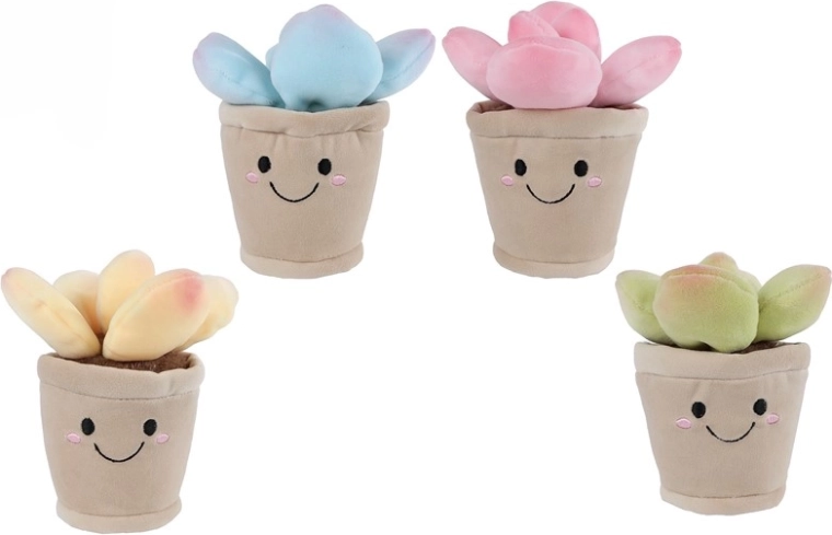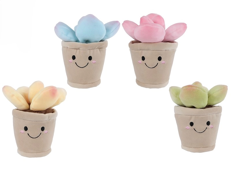 Schattige pluchen plant in vetplant-stijl met een hoogte van 13 cm die zowel de kinderkamer als de speelruimte opvrolijkt. Gemaakt van zachte, aaibare pluche, waardoor het perfect is als veilige knuffel vanaf de geboorte én als lieve decoratie. Verkrijgbaar in vier vrolijke kleuren – groen, blauw, geel en roze – en dankzij het compacte formaat eenvoudig mee te nemen en overal neer te zetten.