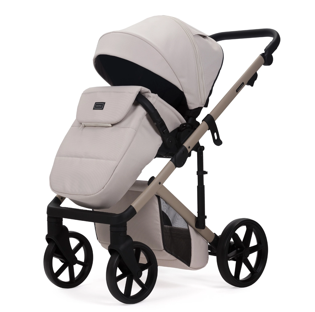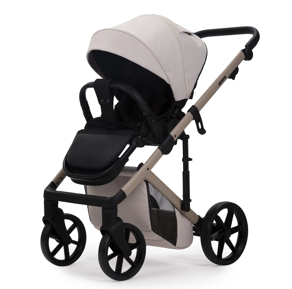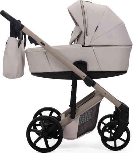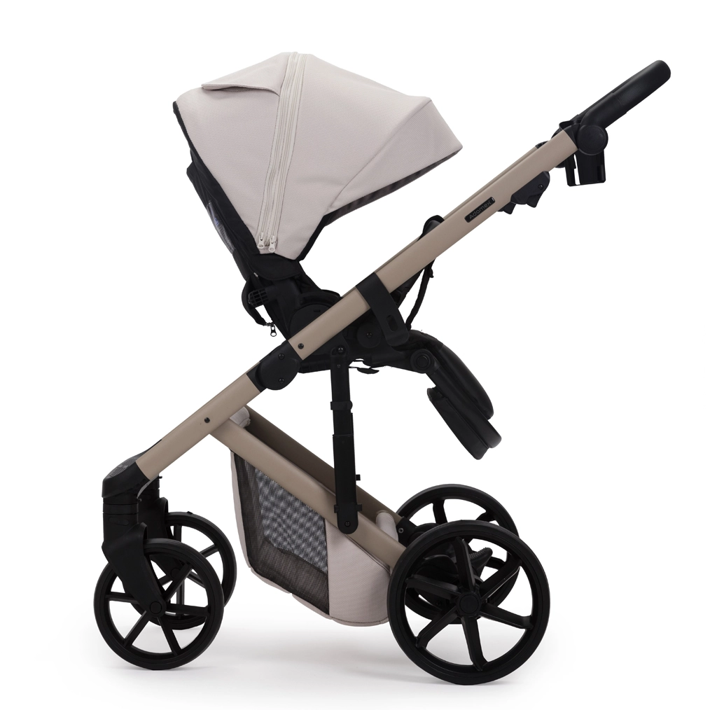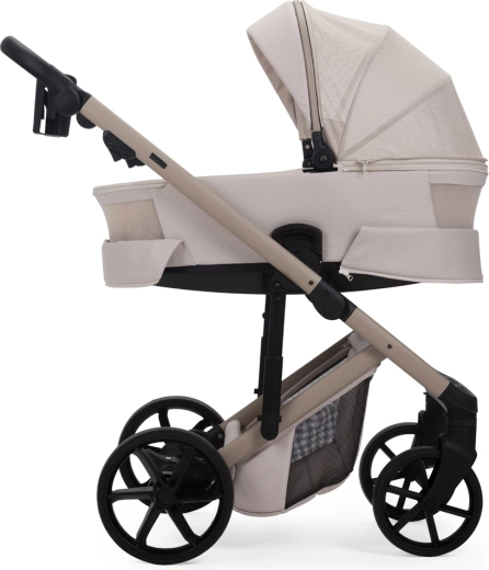 De set bevat een stijlvolle tas, een universele regenhoes, muggennet, bekerhouder en zonneklep. De grote mand onder de kinderwagen biedt ruimte voor alle benodigdheden tijdens elke trip.
