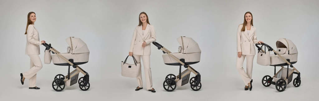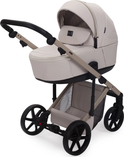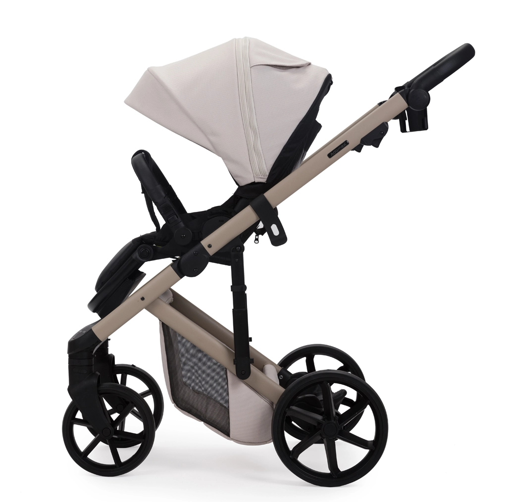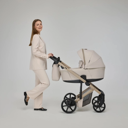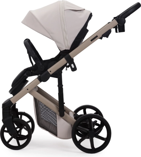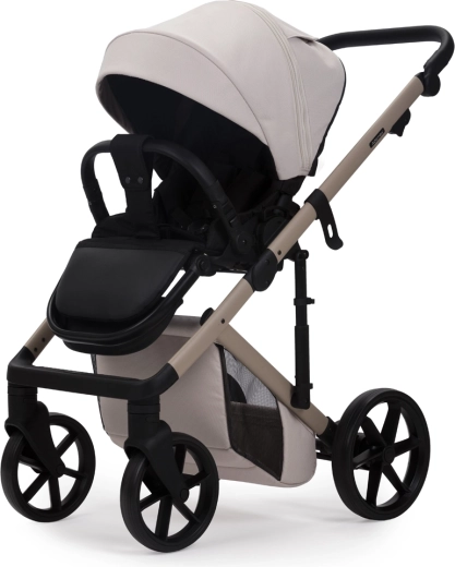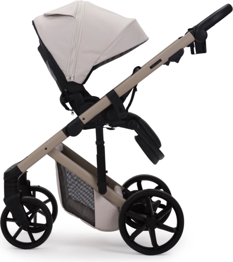 Stijlvolle en comfortabele kinderwagen ADAMEX Dolce 2-in-1 in de tint Vanilla, ideaal voor dagelijkse wandelingen in de stad en op licht terrein. Biedt een uitstekend geveerd frame, snel plat inklappen van de reiswieg, draaibare sportzitting met rijrichting mee of tegen en rijkelijke accessoires, inclusief zonnekap, muggennet en regenhoes. Grote wielen, een ruime mand en doordachte ventilatie van de reiswieg zorgen voor comfort voor kind en ouders bij elk weertype.