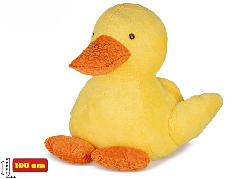 Schattige pluchen eend uit de Plush Friends-collectie in een indrukwekkende 100 cm maat, perfect voor zowel kinderen als volwassenen. Heeft een stabiele zittende positie, is gemaakt van zachte pluche en is veilig vanaf de geboorte. Het realistische design met zorgvuldige details maakt er een geweldige metgezel van om mee te knuffelen, te ontspannen en als decoratie voor de kinderkamer.