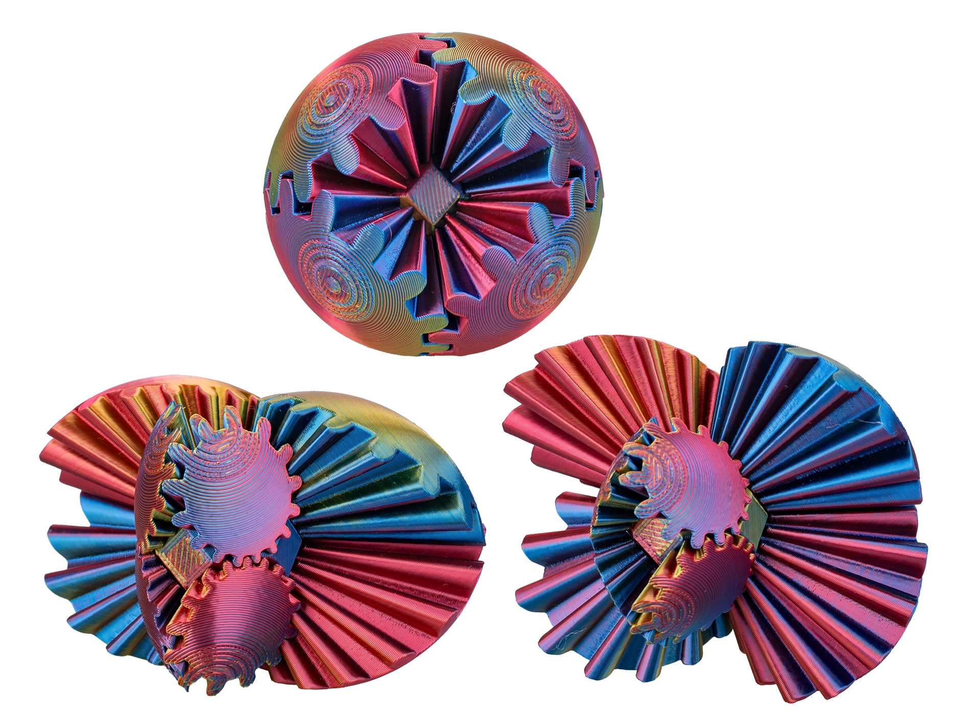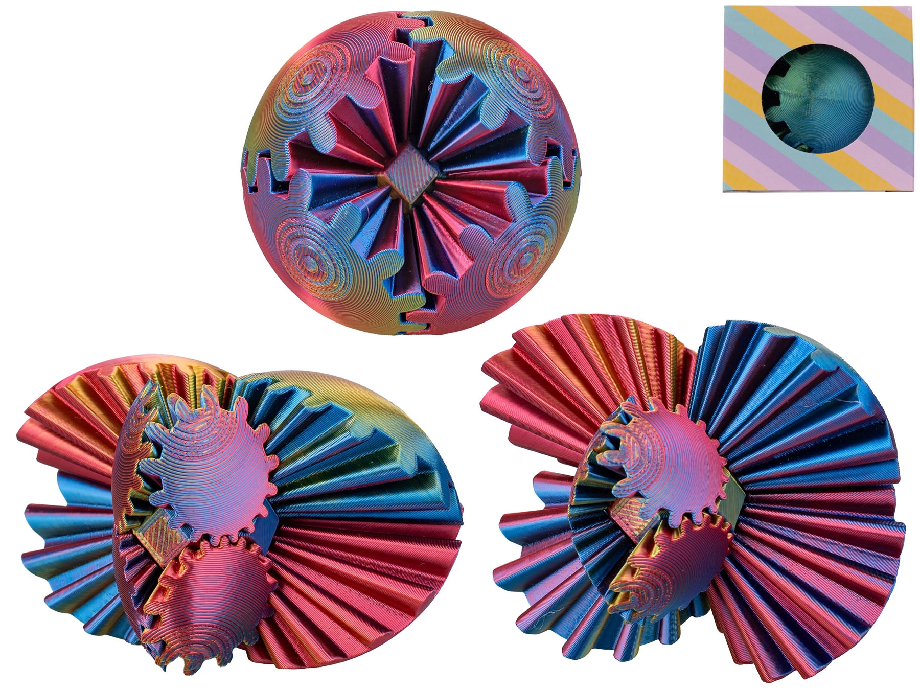 Ontdek de tweekleurige antistress puzzelbal met een diameter van 6 cm, die bij het uit elkaar halen een spiraalvormige fractaalstructuur met tandwielsysteem onthult. Dankzij het soepele in- en uitklappen vermindert hij spanning, houdt hij je handen bezig en bevordert hij concentratie en logisch denken. De compacte afmetingen maken hem tot een ideale reisgenoot.