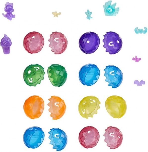 De set bevat kleurrijke plastic eitjes en kleine figuurtjes die interactief ontdekken mogelijk maken.