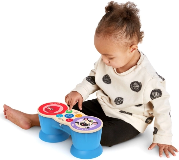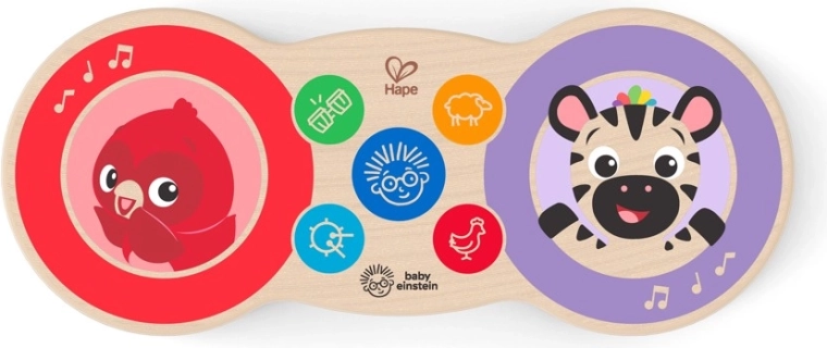 De Baby Einstein Magic Touch Upbeat Tunes muziektrommels combineren natuurlijk hout, moderne aanraaktechnologie en een vriendelijke peutervormgeving. Kinderen ontdekken gemakkelijk tonen en ritmes zonder veel kracht – een zachte aanraking is genoeg. Dankzij meerdere geluidsmodi verveelt het speelgoed niet snel en stimuleert het de sensorische waarneming en muzikale creativiteit.