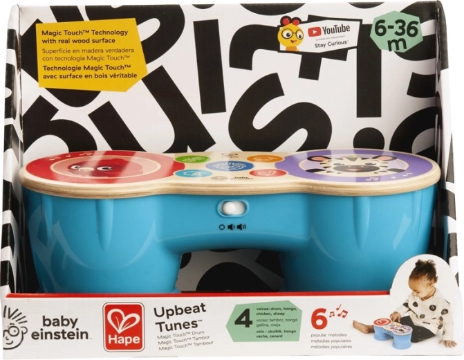 Ontdek de vreugde van muziek met de Baby Einstein Magic Touch Upbeat Tunes kindertrommels. Het houten oppervlak met Magic Touch-technologie reageert op een lichte aanraking en laat kinderen vanaf 6 maanden klassieke melodieën spelen, schakelen tussen drum- en bongo-geluiden en grappige dierengeluiden. Met één druk op de Einstein-knop start je 6 favoriete melodieën. Een geweldige speelgoedkeuze voor de ontwikkeling van de fijne motoriek, ritme en creatieve expressie.