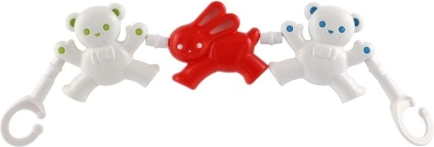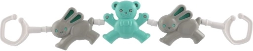 De kinderwagenketting met beertjes en konijntje is een ideale accessoire om je kind te vermaken. Dankzij de gevarieerde vormen en heldere kleuren helpt hij de fijne motoriek en zintuigen van je peuter te ontwikkelen. De eenvoudige bevestiging met haakjes aan beide uiteinden maakt snel en gemakkelijk vastmaken aan de kinderwagen of het ledikant mogelijk.