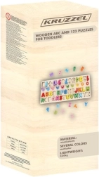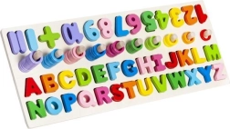 Deze multifunctionele houten puzzel combineert plezier en leren in één. Tijdens het spelen maken kinderen kennis met de vormen van letters en cijfers, leren ze deze benoemen, bouwen ze de eerste eenvoudige woordjes en oefenen ze rekenen met ringen op de pinnetjes. De levendige kleuren motiveren tot ontdekken en ondersteunen creativiteit en concentratie.
