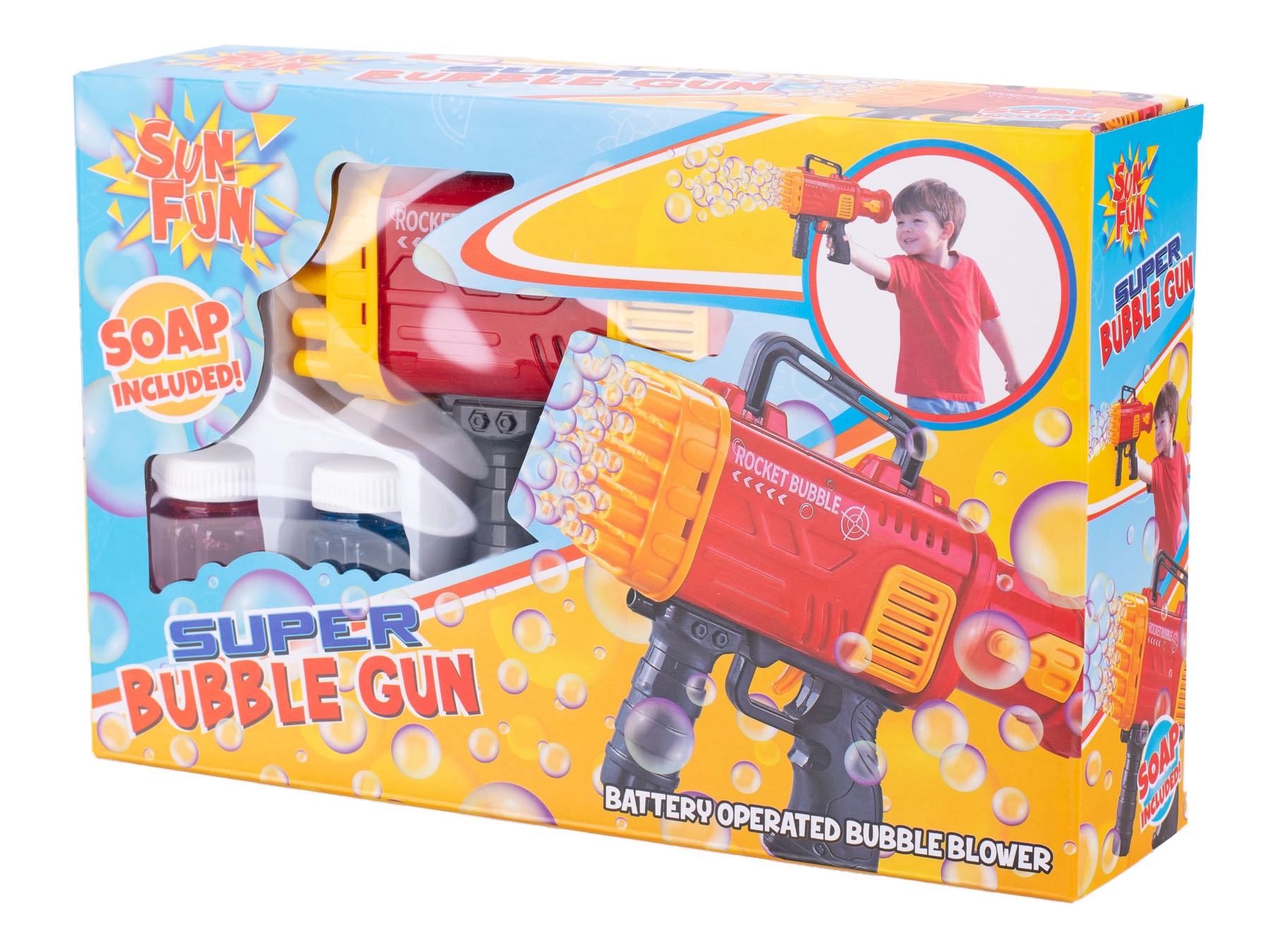 Maak kinderen blij met het Sun Fun bellenblaaspistool, dat met één druk op de trekker talloze bellen creëert. Dankzij de eenvoudige bediening, het comfortabele handvat en het aantrekkelijke design is het ideaal voor buitenspellen, feestjes en zomerplezier. Plaats simpelweg batterijen (niet inbegrepen), sluit de navulling aan en het plezier kan beginnen.