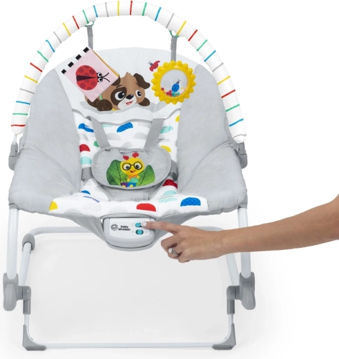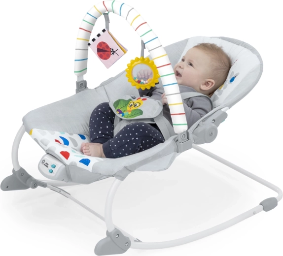 Universele babywip en schommelstoel in één voor baby’s vanaf de geboorte tot peuterleeftijd. Biedt zachte vibraties, klassieke muziek meer dan 20 minuten, 2 gebruiksmodi (stabiele zit / schommelstoel), 2 kantelposities en een 5-punts veiligheidsgordel. De afneembare speelboog met sensorisch speelgoed stimuleert de ontwikkeling en zorgt voor plezier; de hoes is eenvoudig machinewasbaar.