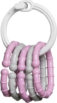 De lichte ring ligt prettig in de hand en de hangers zijn eenvoudig vast te pakken. Tijdens het spelen traint het kind de grijpreflex, behendigheid en het manipuleren van voorwerpen.