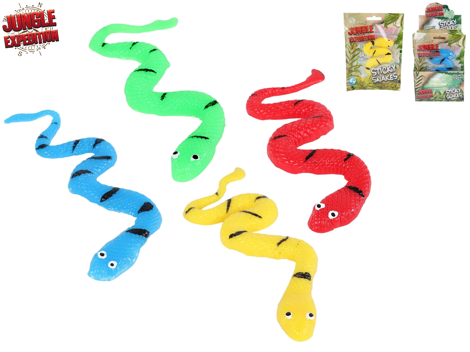 De rekbare kleverige slang Jungle Expedition is ideaal voor creatief spel thuis en onderweg. Dankzij het elastische materiaal laat hij zich gemakkelijk uitrekken, past zich aan verschillende vormen aan en blijft na het gooien aan gladde oppervlakken kleven. Door af te spoelen met water wordt de kleverigheid opnieuw geactiveerd, zodat het spelplezier blijft doorgaan.