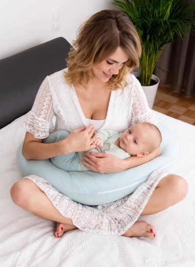 Het Babymatex Moon voedingskussen is ontworpen voor maximaal comfort voor moeder en baby in elke fase – van zwangerschap tot borstvoeding en de eerste zitpogingen. De ademende mousseline van 100% katoen is zacht voor de gevoelige huid en zorgt voor een prettig microklimaat. Dankzij de extra lengte van 260 cm pas je het kussen precies aan jouw behoeften aan – langs het lichaam, rond de buik of als veilige steun voor het kindje.