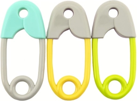 De rammelaar in de vorm van een veiligheidsspeld bevordert de oog-handcoördinatie, helpt de grijpreflex te trainen en brengt plezier in het ontdekken van contrasterende kleuren en vormen. Perfect voor thuis en onderweg.