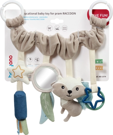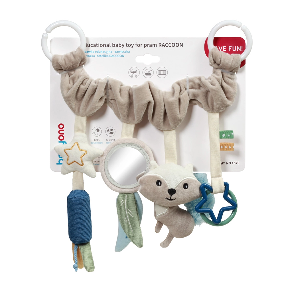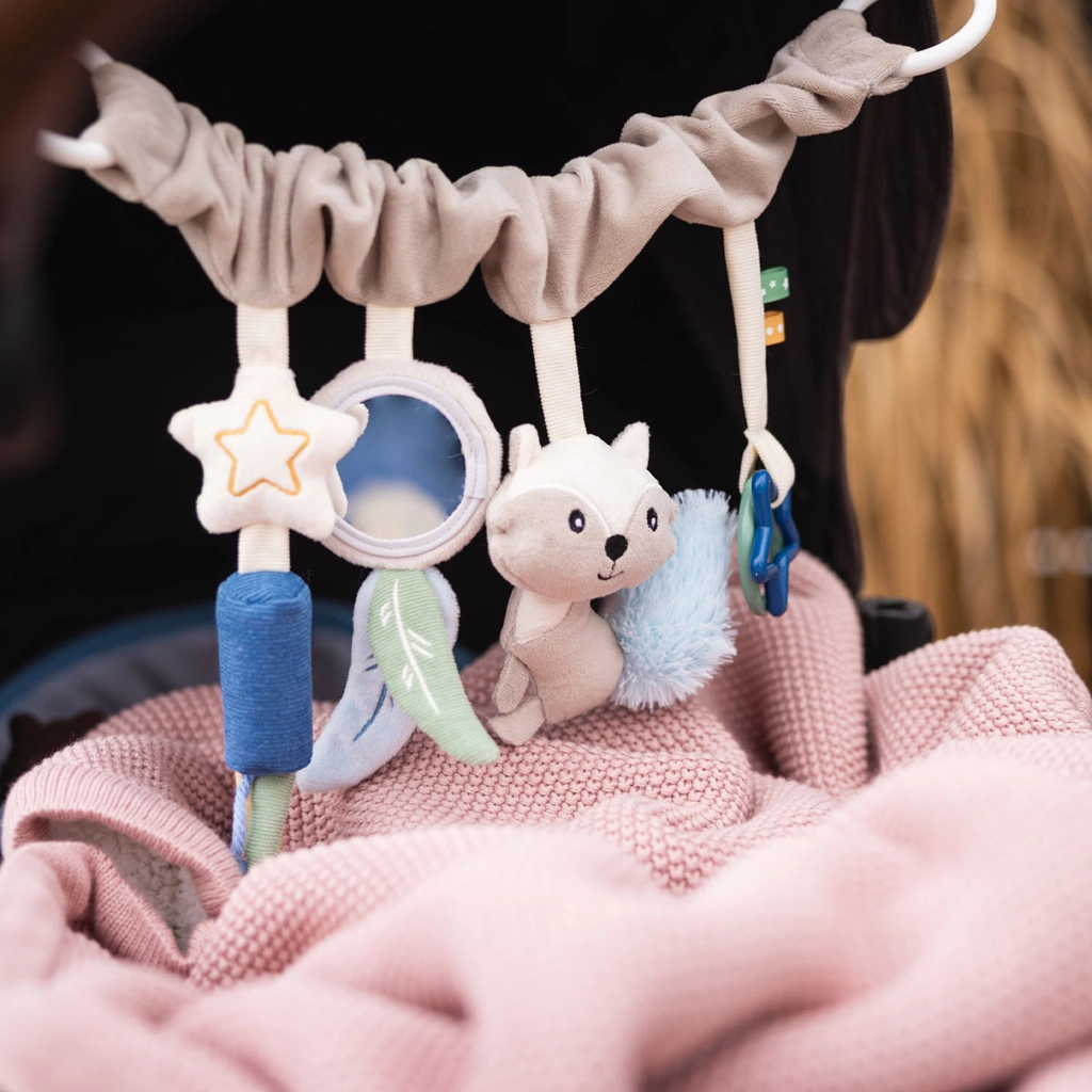 De BABYONO Raccoon speelboog biedt je baby rijke zintuiglijke stimulatie tijdens wandelingen en reizen. Dankzij de universele bevestiging maak je hem eenvoudig vast aan de kinderwagen, autostoel en het ledikant. De zachte materialen zijn vriendelijk voor de babyhuid en het veilige ontwerp ondersteunt de visuele en tactiele ontwikkeling.