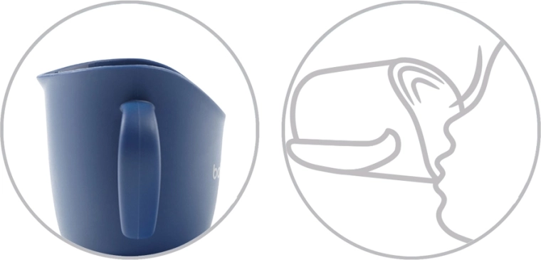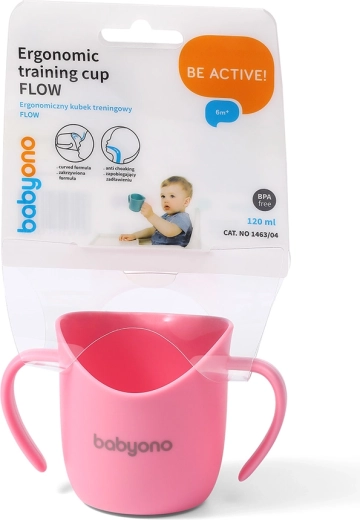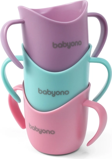 De BabyOno oefenbeker is ontworpen op basis van de anatomische en motorische vaardigheden van peuters. Hij ondersteunt de natuurlijke manier van drinken uit een open beker en is daarmee de ideale overgang van fles of antidruppelbeker. De schuine rand en de brede, ergonomische handgrepen stellen het kind in staat de hoek en het drinktempo aan te passen, wat het risico op morsen vermindert en de juiste kaakbewegingen ondersteunt.