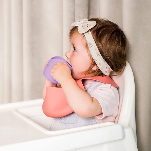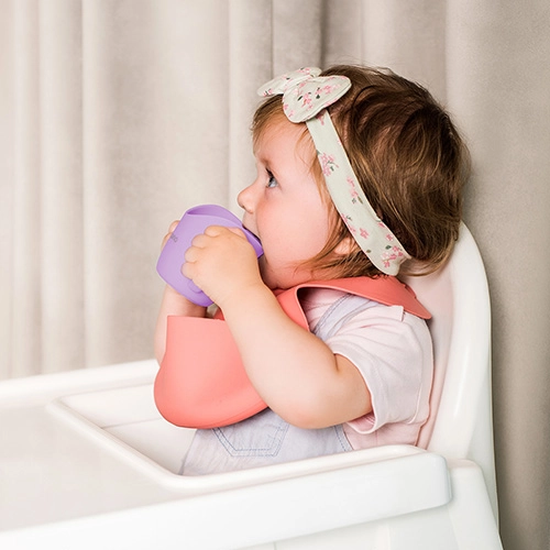 Dankzij de lichte en duurzame constructie zonder BPA, ftalaten en PVC is de beker veilig voor dagelijks gebruik. Het eenvoudige onderhoud, inclusief vaatwasmachinebestendigheid, maakt het ouders makkelijker. De inhoud van 120 ml is ideaal voor de eerste pogingen tot zelfstandig drinken en het trainen van de fijne motoriek.