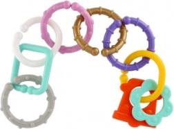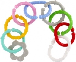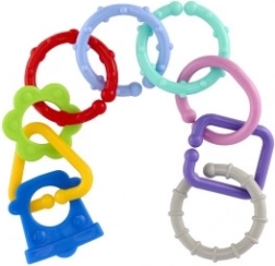 Ringen en vormen zijn eenvoudig aan elkaar te koppelen en blijven goed zitten, zodat kinderen kettingen kunnen maken of speelgoed aan de kinderwagen of autostoeltje kunnen bevestigen.