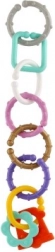 Deze set kleurrijke ringen en vormen is ontworpen voor de allerkleinsten. Dankzij de verschillende kleuren, vormen en texturen ontwikkelen kinderen op een natuurlijke manier hun zintuiglijke waarneming en oog-handcoördinatie. De afzonderlijke delen zijn makkelijk te koppelen en blijven stevig vastzitten, zodat kinderen hun eigen kettingen kunnen maken of speelgoed aan de kinderwagen of het autostoeltje kunnen bevestigen.